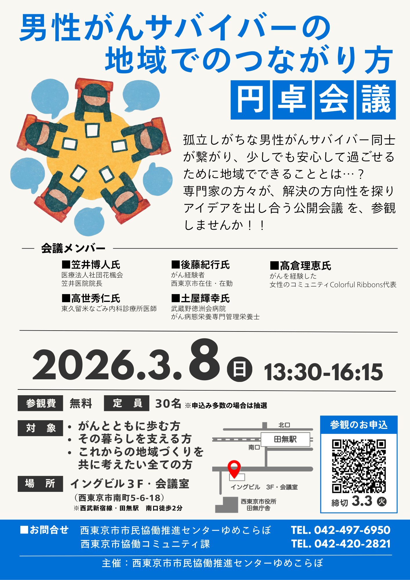 【まちづくり円卓会議】男性がんサバイバーの地域でのつながり方