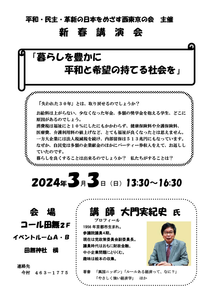 | 主催 | 平和・民主・革新の日本をめざす西東京の会 |