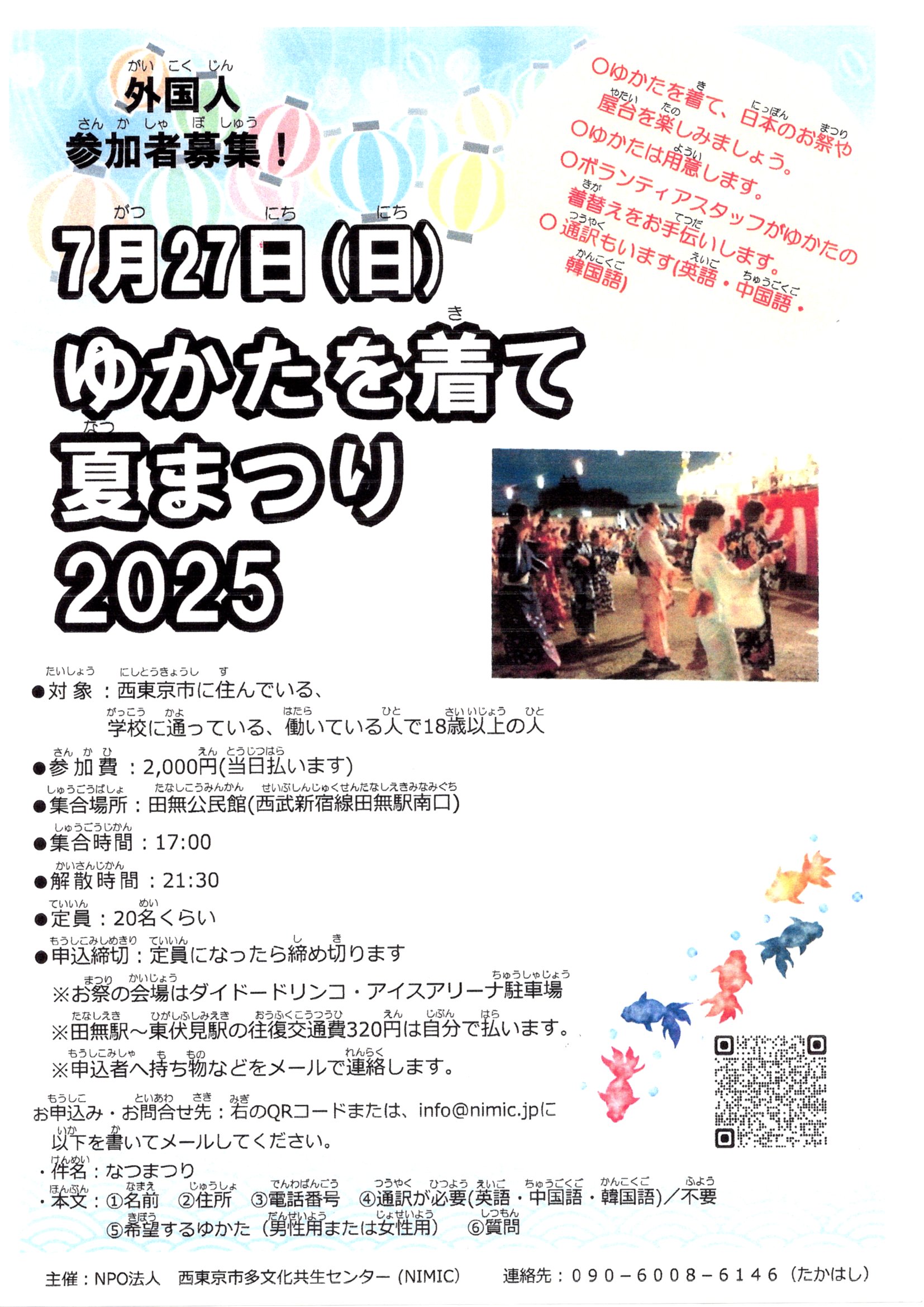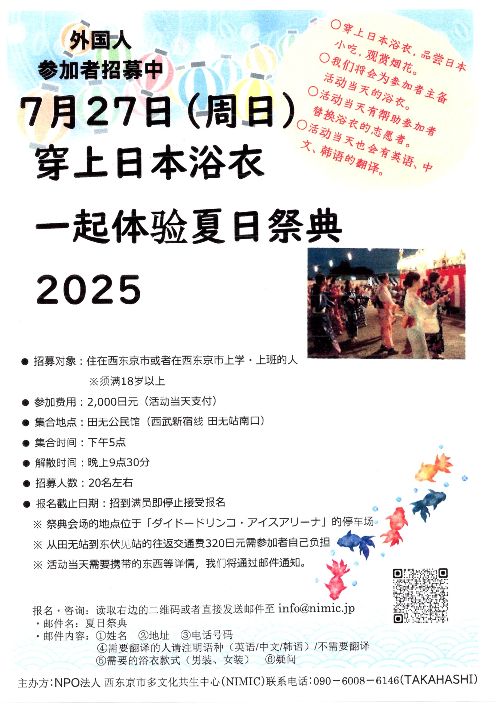 外国人参加者募集!ゆかたを着て夏まつり2025