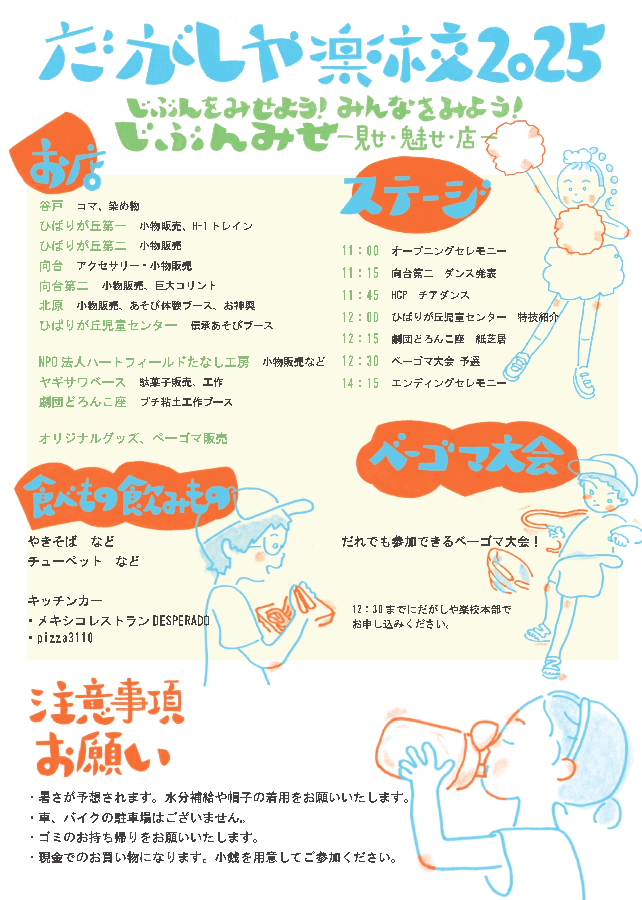 キッチンカーや食べ物販売の出店あり