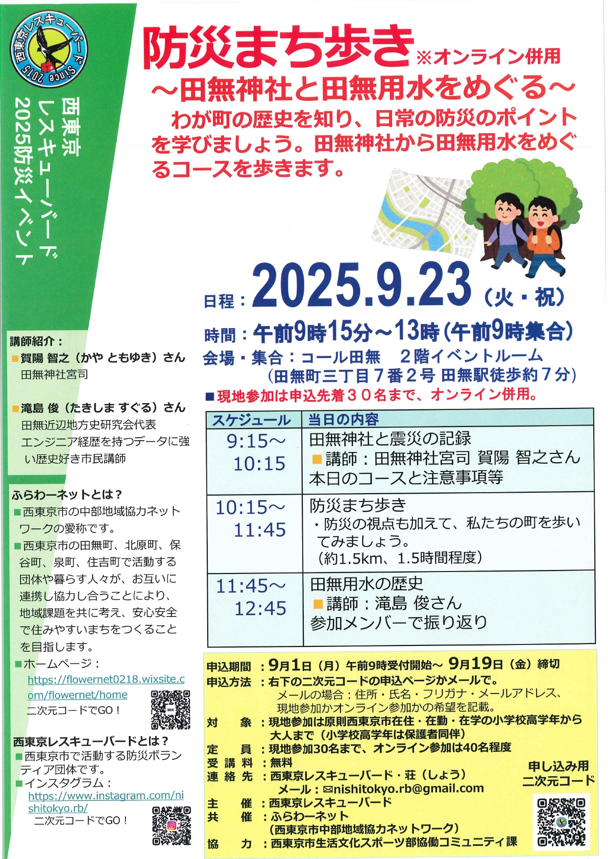 防災まち歩き~田無神社と田無用水をめぐる~オンライン併用