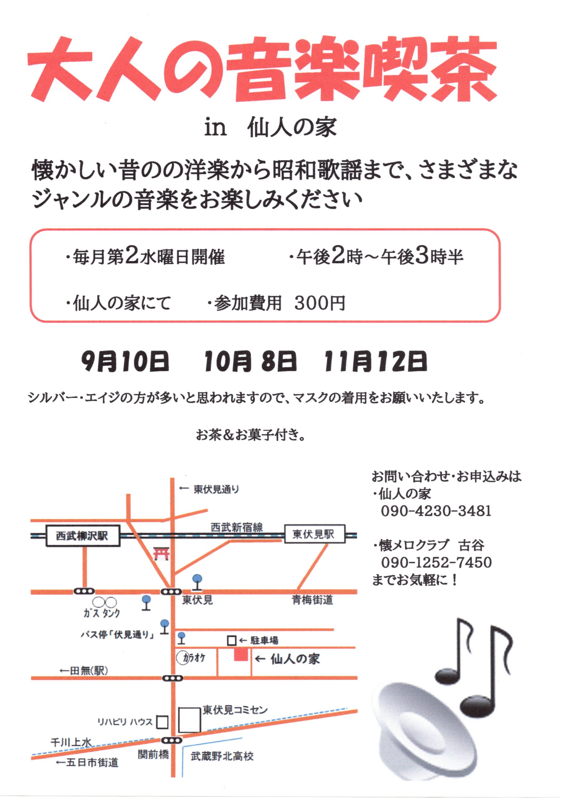 2025年9月11日 / 最終更新日時 : 2025年9月11日 yumecollabo 子ども 大人の音楽喫茶 in 仙人の家 開催日時 2025年10月08日(水曜日) 14:00〜15:30 会場 仙人の家 主催 仙人の家 連絡先 090-4230-3481 参加費 300円 Facebook Facebook