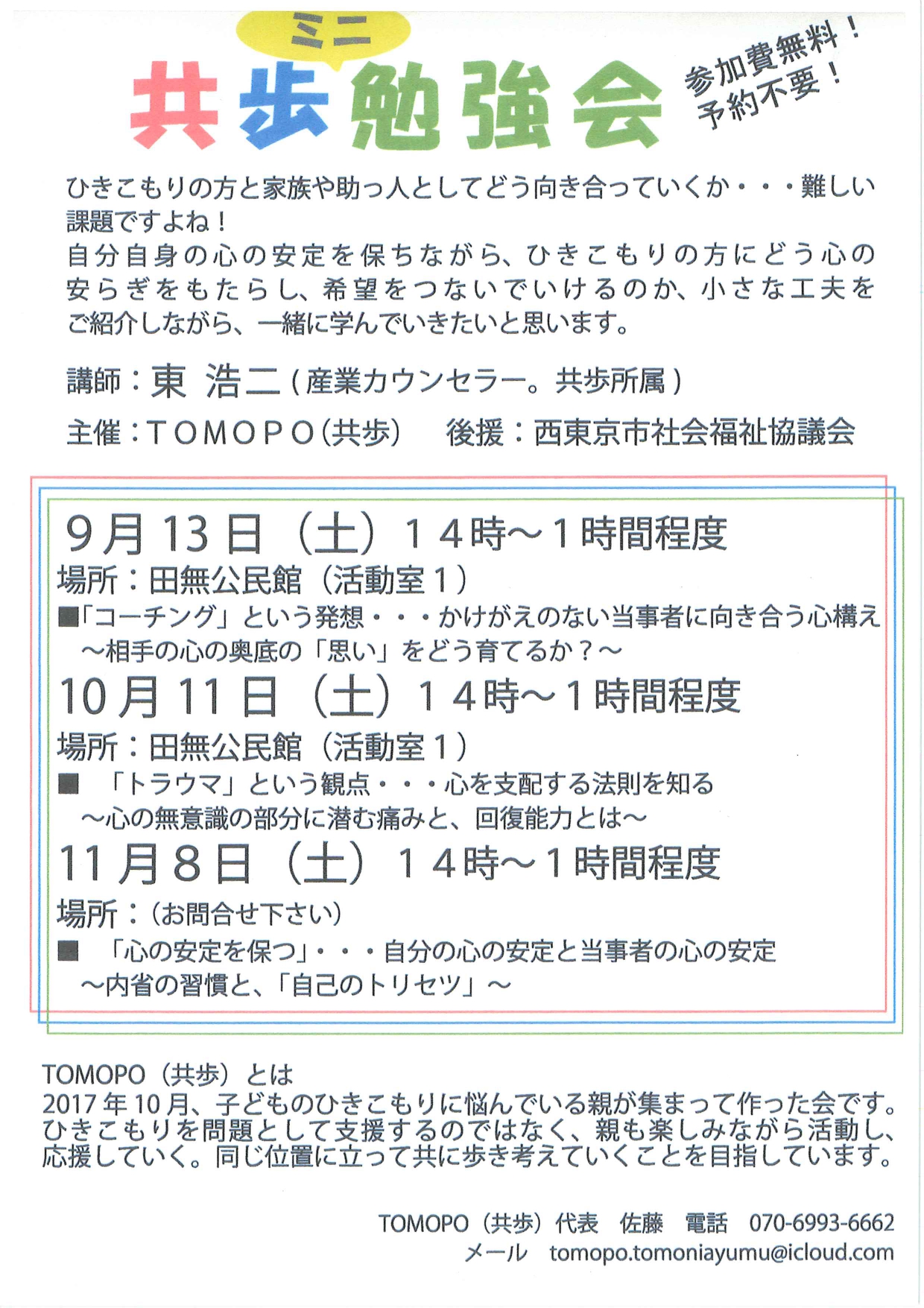 連絡先 070-6993-6662(TOMOPO共歩 代表佐藤)