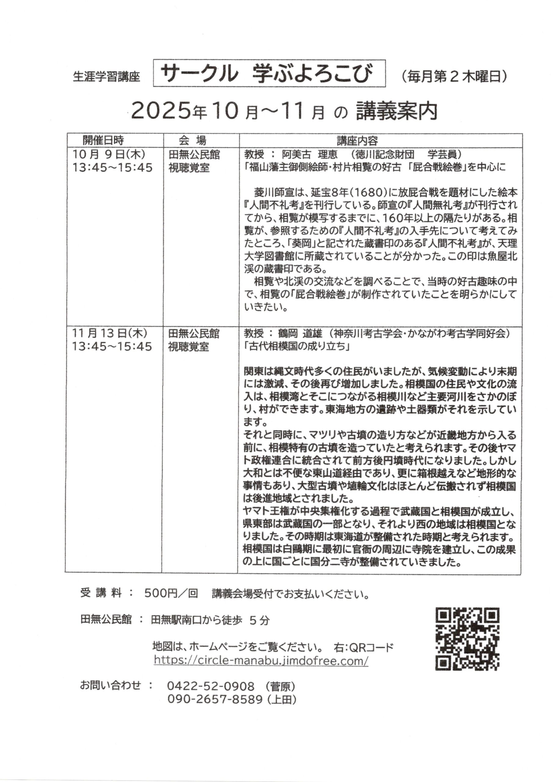 〈サークル 学ぶよろこび〉生涯学習講座「古代相模国の成り立ち」