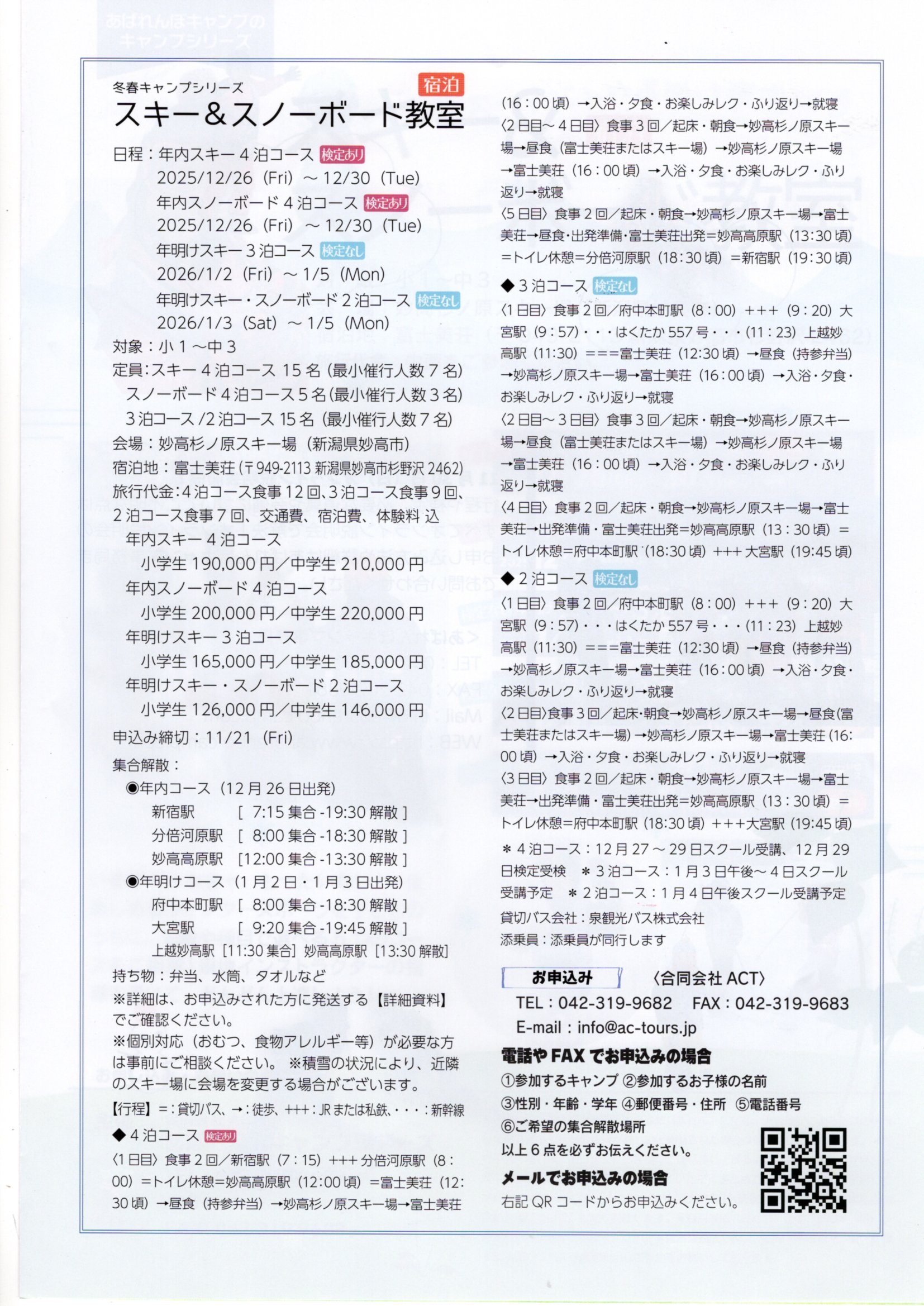 | 参加費 | 有料(学年によって異なる) ※申込締切:11/21(金) |