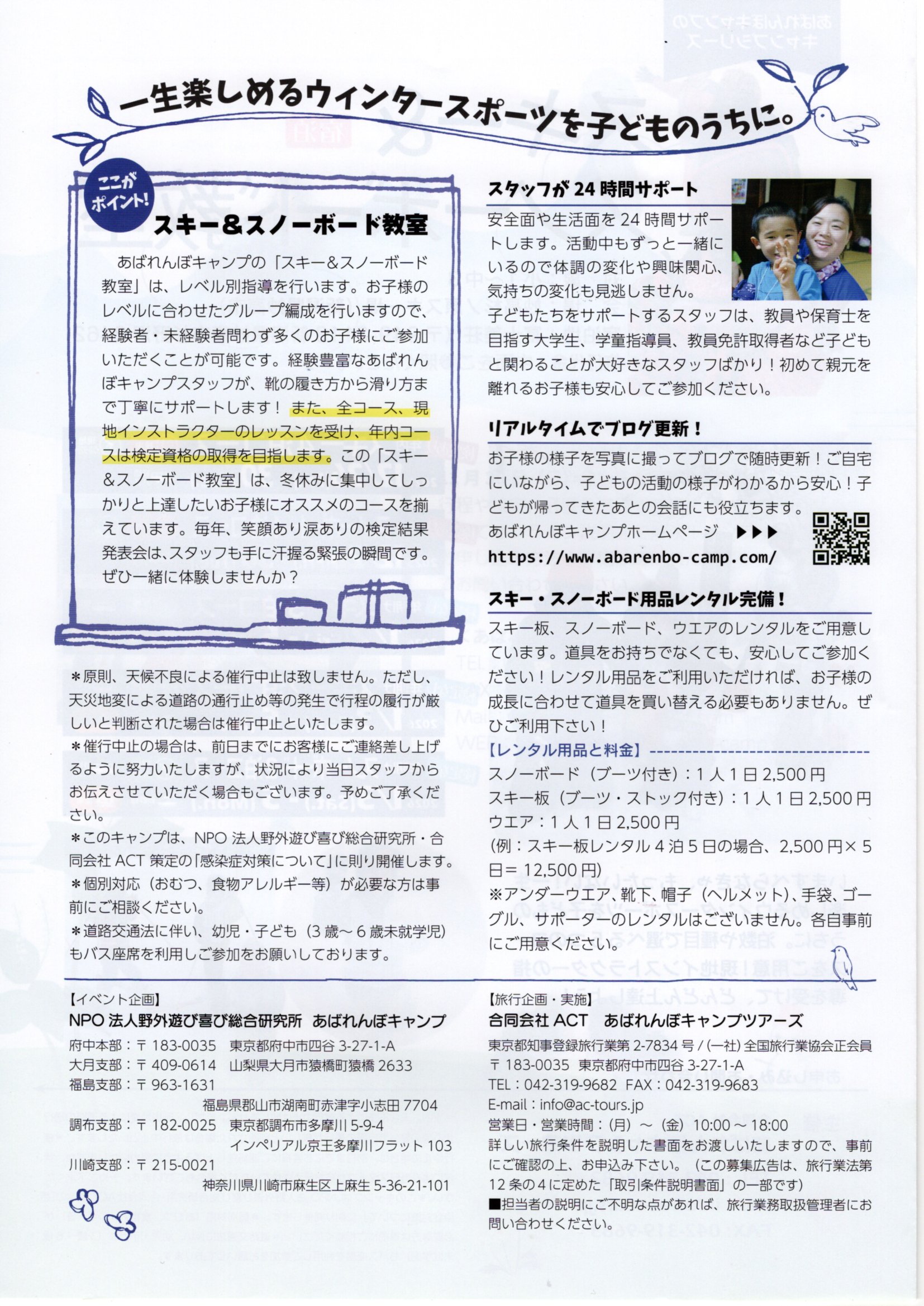 | 連絡先 | 042-319-9682 (合同会社ACT あばれんぼキャンプツアーズ) |