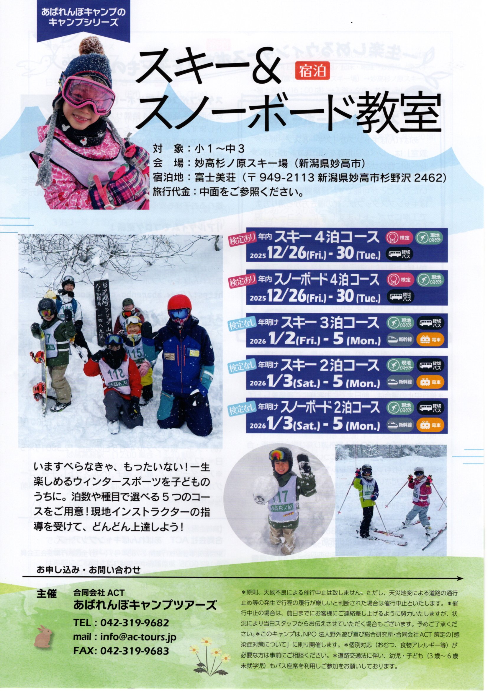 スキー&スノーボード教室(検定あり)(4泊コース)