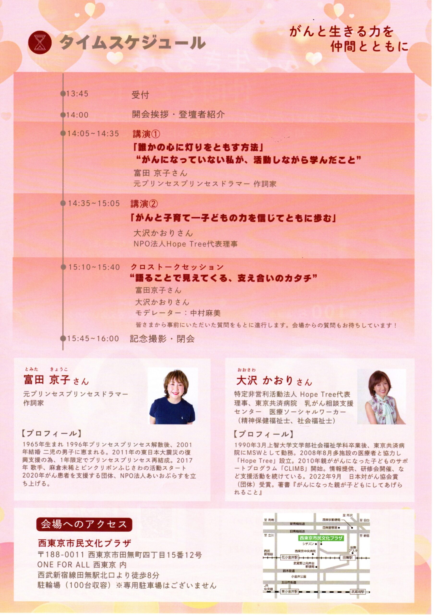 | 主催 | がんを経験した女性のコミュニティ Colorful Ribbons |