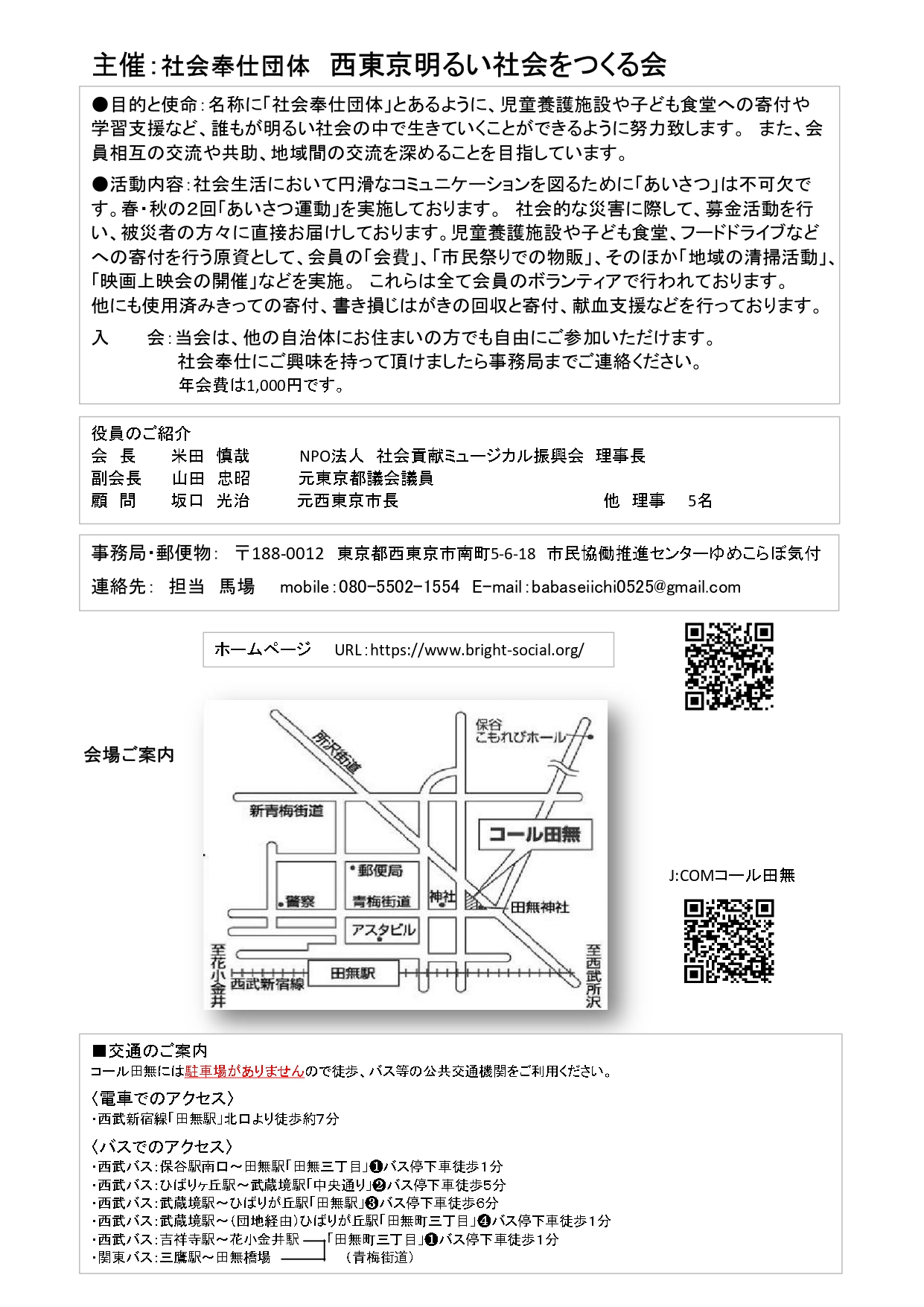 | 主催 | 西東京明るい社会をつくる会 |