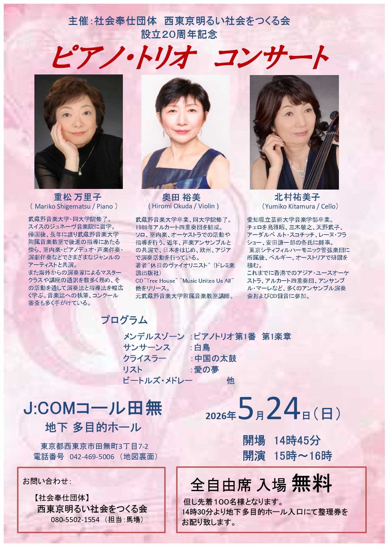 西東京明るい社会をつくる会 設立20周年記念ピアノ・トリオ コンサート